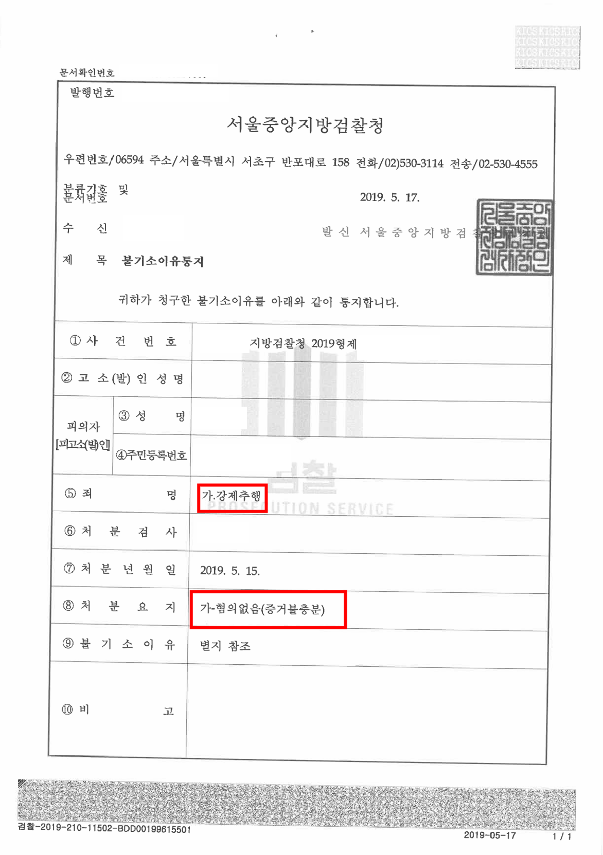 형사 강제추행 무혐의 불기소 이유서 2025.07.15